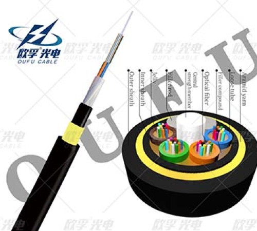 ADSS cable is a loose tube-stranded structure. The optical fiber is 250pm, and the loose tube is made of high-modulus plastic, which is filled with a waterproof compound. ln the center of the cable core is an FRP-strength member, The loose tube (and the filling rope) is twisted around the central reinforcement core to form a compact and round cable core, and the gap in the cable core is filled with a water-blocking filler. The outer of the cable is a polyethylene (PE) inner sheath, then twisted high tensile strength aramid, and the outermost is the electric tracking (AT) outer sheath.